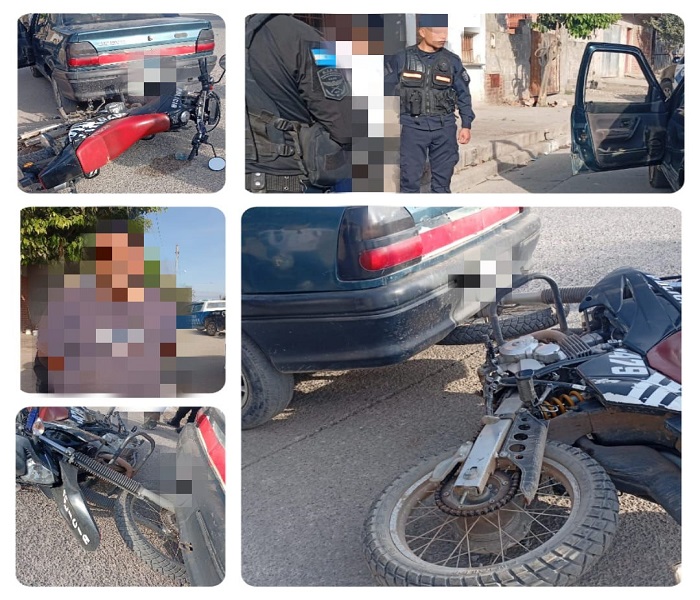 El conductor, un hombre de 39 años, realizó una maniobra marcha atrás, impactando y dejando atrapada una de las motocicletas policiales, además de lesionar a un agente en el tobillo derecho.