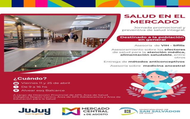 En el marco del Día Mundial de la Salud, el Ministerio de Salud de la Provincia llevará adelante durante el mes de abril una serie de actividades preventivas y promocionales en el Mercado “6 de Agosto” de San Salvador de Jujuy.