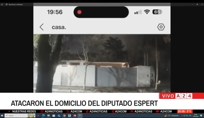 El hecho ocurrió pasadas las 19 horas del martes cuando el legislador estaba con su esposa dentro de la casa. En A24 mostraron el escrache las cámaras de seguridad de la zona en donde se vé a más de cuatro individuos bajar de una camioneta blanca para concretar la amenaza.