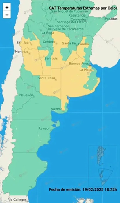 La provincia de San Juan también tiene alerta amarilla por temperaturas extremas por calor desde el centro hasta el sur de la provincia.