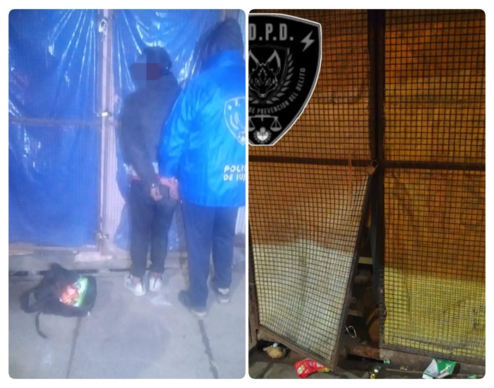 El personal de la unidad Zorro 2 sorprendió al malviviente en flagrancia, justo cuando aprovechaba una deficiencia en la estructura de las rejas para extraer diversos productos del interior del comercio.