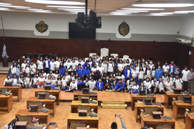 Un grupo de 120 alumnos ingresantes del 1er año de la Escuela Provincial de Artes N. 1 Medardo Pantoja de la ciudad Capital visitaron la Legislatura de la provincia, el objetivo fue conocer las instalaciones de la institución, su historia, el funcionamiento de las diversas áreas y sobre el debate que se desarrolla en el Recinto de Sesiones.