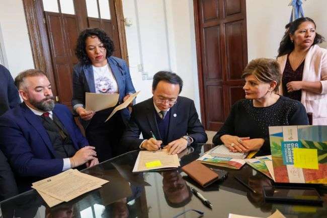 En la oportunidad, rubricaron el Acuerdo, la ministra de Ambiente y Cambio Climático, María Inés Zigarán; en representación de CNGR su CEO suramericano, Li Hui; y los comuneros Ismael Adrián Vasquéz, de la Comisión Aborigen Paso de Jama; Mario Alberto Gerónimo, de la Comisión Aborigen de Olaroz Chico; y Anahí Vasquez, de El Toro.