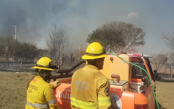 Unidades operativas del Cuerpo de Bomberos, en coordinación con Defensa Civil, Manejo del Fuego y voluntarios de Alto Comedero, Perico, Monterrico y Humahuaca, trabajan desde primera hora de la presente jornada para controlar y sofocar numerosos incendios de pastizales que se expanden y multiplican por acción de las continúas y fuertes ráfagas de viento que se registran en el territorio provincial.