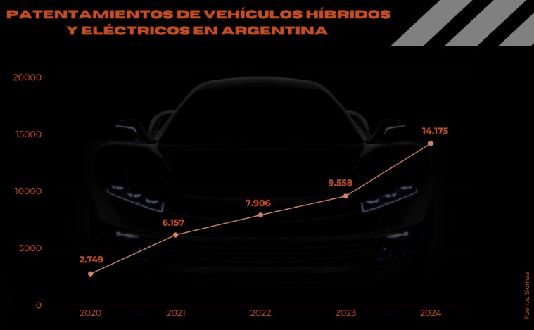 Durante 2024, el sector experimentó un crecimiento notable. Según un informe conjunto de ACARA y SIOMAA, se patentaron 14.175 vehículos con motorización electrificada, lo que representó un incremento del 48% respecto al año anterior. La gran mayoría de estas unidades fueron híbridos no enchufables (HEV), con un 86% del total, mientras que los eléctricos puros (BEV) apenas alcanzaron el 4%, y los Mild Hybrid (MHEV) el 9%. Esta tendencia ratifica lo observado desde 2021, cuando comenzó a despegar el mercado. En ese año se vendieron poco más de 6.000 unidades electrificadas, cifra que se duplicó en apenas tres años.