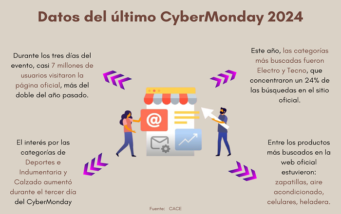 Aunque, más allá de este escenario crítico, el último CyberMonday 2024 presentó un respiro para el sector comercial, con cifras récord en ventas online. Durante los tres días del evento organizado por la Cámara Argentina de Comercio Electrónico (CACE), casi 7 millones de usuarios visitaron la página oficial, duplicando los números del año pasado. Entre las categorías más buscadas se destacó el calzado, que registró un aumento en el interés de los consumidores, especialmente hacia el cierre del evento.