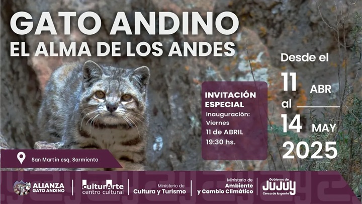 Del 11 de abril al 14 de mayo, el Centro Cultural CulturArte será sede de la exposición “Gato Andino: El alma de los Andes”, una experiencia visual y educativa que invita a descubrir la esencia silvestre y sagrada del Gato Andino (Leopardus jacobita), uno de los felinos más enigmáticos y amenazados del planeta.