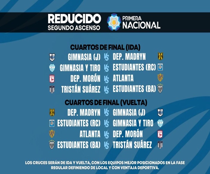 La nueva etapa comenzará el viernes 18 de octubre a las diez de la noche, cuando Gimnasia y Tiro de Salta reciba a Estudiantes de Río Cuarto. La definición de esta llave será en Córdoba, en la revancha que se jugará la semana siguiente.