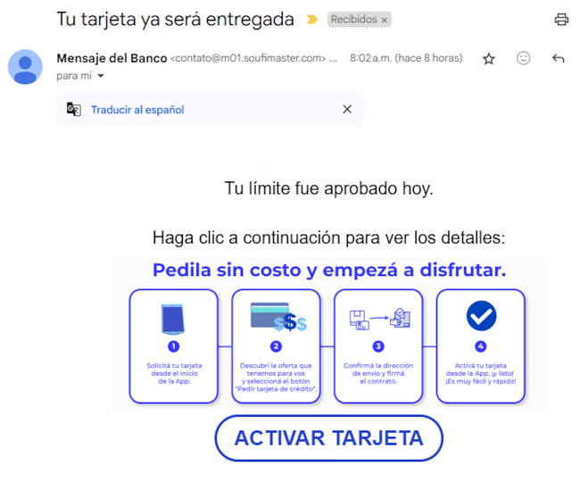 Correos engañosos disfrazados de oportunidades financieras esconden una estafa que busca apropiarse de tus datos y de tus ahorros. Miles de argentinos reciben por estos días correos electrónicos fraudulentos que prometen tarjetas, listas para usar y préstamos ya aprobados.