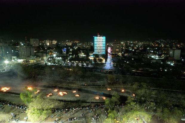 Así, en el marco de la Marcha Evocativa del Éxodo Jujeño el Poder Judicial rindió homenaje a los hombres y mujeres que protagonizaron la gesta histórica, y en el momento previo a la lectura del Bando del General Manuel Belgrano, con la presencia del gobernador de la provincia CPN Carlos Sadir, el presidente de la Suprema Corte de Justicia Dr. Ekel Meyer, acompañado por los jueces del Alto Cuerpo Dres. Sergio Jenefes, Federico Otaola, Laura Lamas González, Mariano Miranda y María Eugenia Nieva y el intendente municipal de San Salvador de Jujuy, Arq. Raúl Jorge se encendió la iluminación ornamental del Palacio de Tribunales.