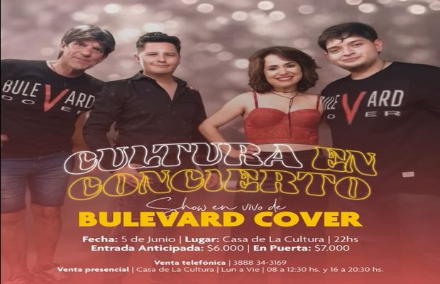 El jueves, el ritmo continuará con la presentación de Bulevard Cover, banda local que ofrecerá un repertorio cargado de clásicos y éxitos que harán cantar a todos los presentes. El show comenzará a las 22:00 y se espera una gran convocatoria. Las entradas anticipadas costarán $6.000, mientras que en puerta tendrán un valor de $7.000.