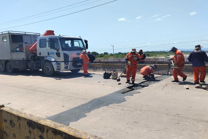 Con equipos y personal propio, se realiza además la limpieza general del puente, y la pintura del cordón divisorio, en el acceso a la Ruta Provincial 83.