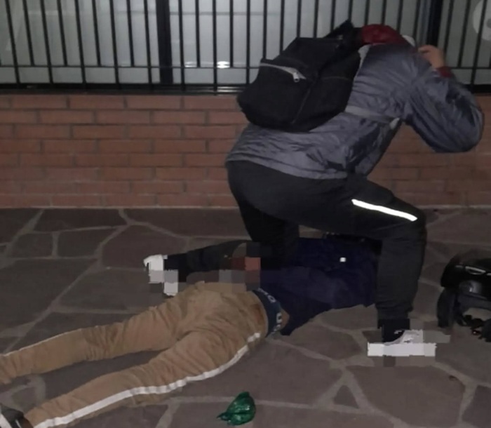 ​Al notar la llegada de la patrulla Zorro 3, el sospechoso emprendió una veloz fuga cruzando la pasarela hacia avenida Párroco Marshke. Tras una intensa persecución a pie, los efectivos de civil lograron interceptarlo en la esquina de la calle Cuyo para proceder a su demora.