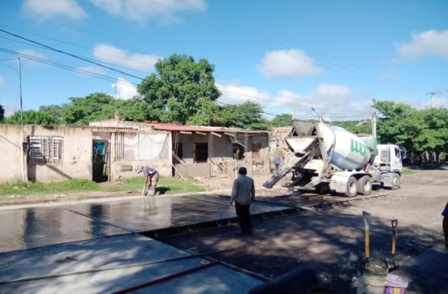 Paralelamente a todos estos trabajos se continúa con el hormigonado en calle Pueyrredón, sector de barrio San Martín, avanzando con la pavimentación que beneficia a los sectores de bajo San Martín, bajo Moralito y barrio Paterson.