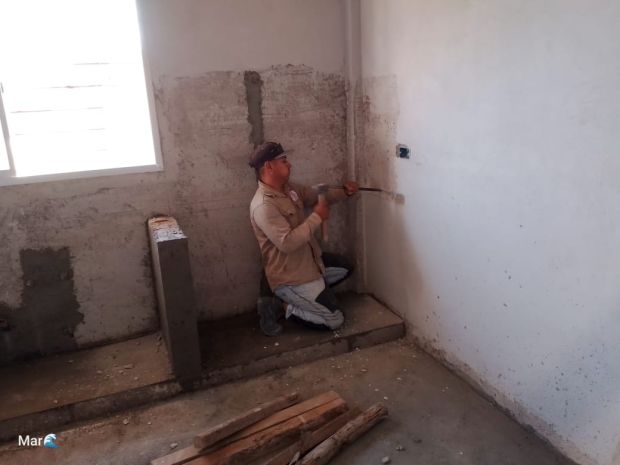 A cargo del equipo de la Secretaría de Obras Públicas, se procedió a colocar los cerámicos en el hall del ingreso principal, como así también en los baños, posteriormente se procederá a colocar inodoros y bidets