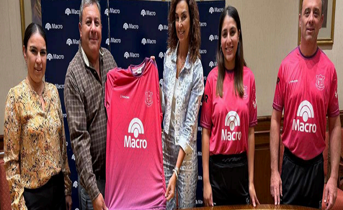 Durante la firma del acuerdo, la gerente Divisional de Banco Macro, Andrea Madariaga, entregó a José García Naser, presidente de la UJR, la indumentaria que usarán los árbitros en los partidos de 2025.