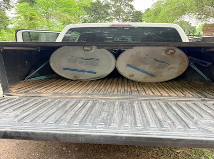 En la caja del vehículo se hallaron dos barriles metálicos de 200 litros cada uno. Durante la requisa, realizada en la base de la PSA en Ezeiza, se descubrió un doble compartimiento que ocultaba 245 panes de cocaína recubiertos en nylon. Las pruebas de campo confirmaron la sustancia, con un peso total de 255,070 kilogramos. También se incautaron 70.910 pesos, tres celulares, cinco pendrives y documentación de interés.