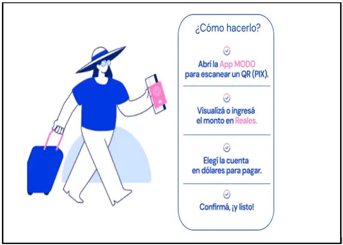 Ahora es posible pagar consumos con PIX -el sistema de códigos QR instantáneos de Brasil- en forma directa desde la APP MODO, utilizando los dólares de la cuenta de Banco Macro.