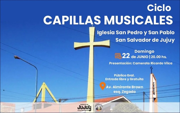 La Secretaría de Cultura de la Provincia invita a una nueva fecha del “Ciclo Capillas Musicales, que tendrá lugar el domingo 22 de junio a las 20:00 horas en la Iglesia San Pedro y San Pablo (Av. Almirante Brown esquina Zegada), en San Salvador de Jujuy.
