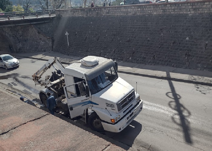 Por lo que posteriormente quedó estacionado en la misma subida del puente ya que en esas condiciones les hacía difícil seguir su recorrido. Mientras tanto tantos los vehículos que circulaban por el lugar debían maniobrar para pasar este obstáculo.