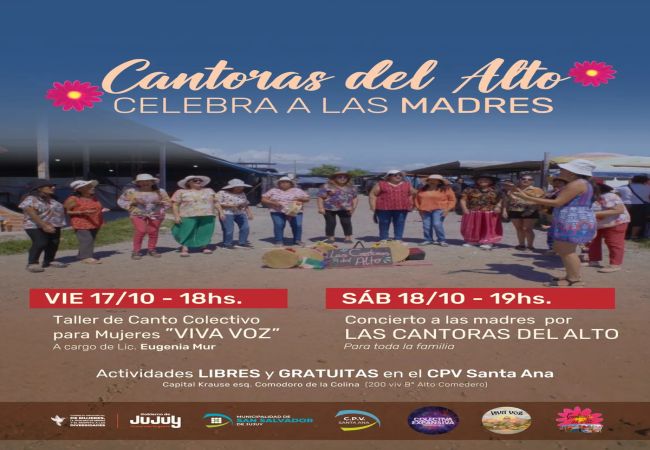 En el marco del “Día de la Madre”, se desarrollarán actividades gratuitas durante el viernes 17 y el sábado 18 de Octubre en el CPV Santa Ana de las 200 Viviendas de Alto Comedero para compartir arte y música con toda la comunidad y conmemorar a las madres en su día.