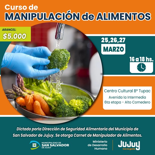 El Ministerio de Desarrollo Humano, a través de la Secretaría de Desarrollo Integral, en coordinación con la Dirección de Seguridad Alimentaria del Municipio de San Salvador de Jujuy capacitarán a emprendedores gastronómicos en manipulación de alimentos.