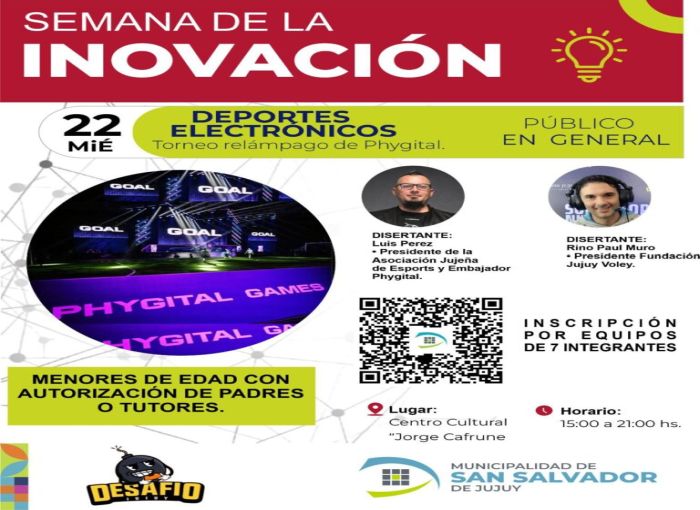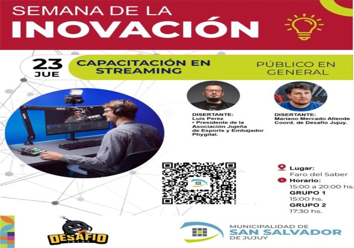 La Municipalidad de San Salvador de Jujuy invita a la comunidad a participar de “La Semana de la Innovación”, que se desarrollará del 20 al 24 de abril en los espacios Faro del Saber y Centro Cultural Jorge Cafrune, con una amplia agenda de actividades abiertas y gratuitas, cuya programación completa puede consultarse en el sitio web oficial del municipio: https://www.sansalvadordejujuy.gob.ar/innovacion/.