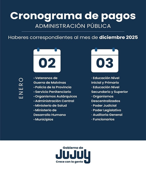 La Administración Pública Provincial confirmó las fechas de acreditación de los salarios correspondientes al mes de diciembre de 2025. El