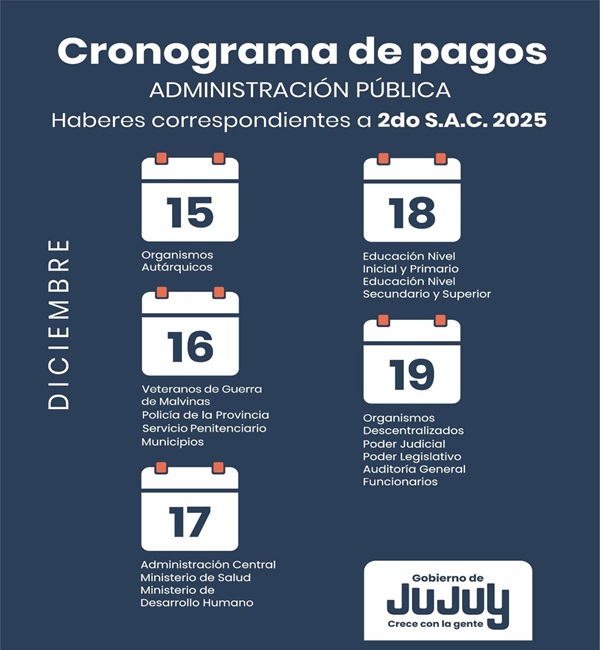 El lunes 15 de diciembre comienza el Cronograma de Pagos 2 do S.A.C 2025