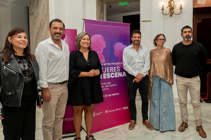 La presentación del Ciclo “Mujeres en escena”tuvo lugar en el hall del Teatro Mitre, encabezada por el Ministro de Cultura