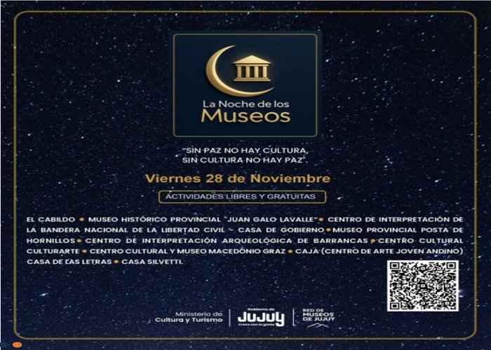 Este viernes 28 de noviembre, entre las 18 y las 24 horas, espacios culturales de toda la provincia ofrecerán una