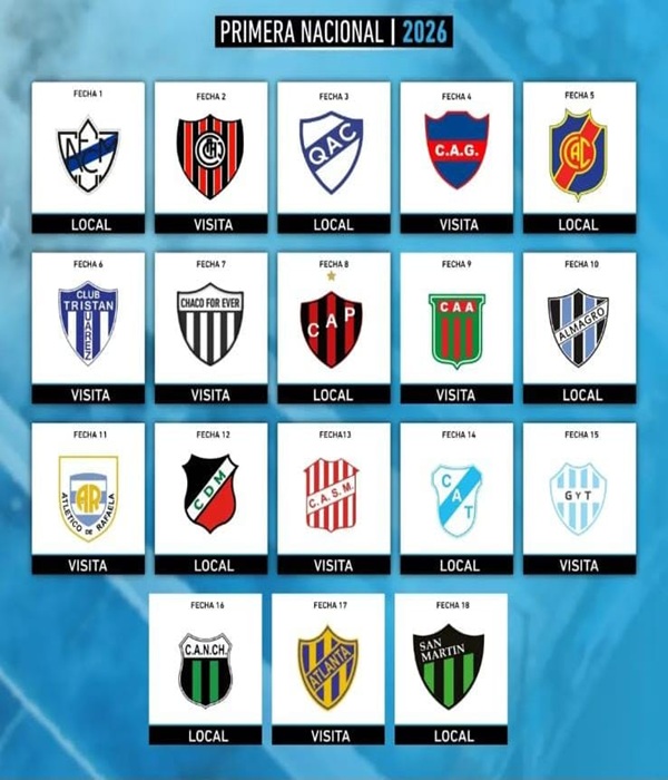 El sorteo realizado por la Asociación del Fútbol Argentino (AFA) para la edición 2026 de la Primera Nacional, definió que