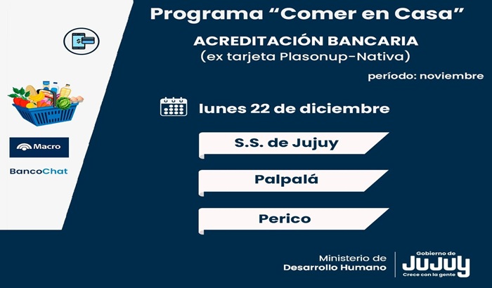 Desde el lunes 22 se encuentra acreditada la tarjeta para titulares del programa Comer en Casa de tres localidades de