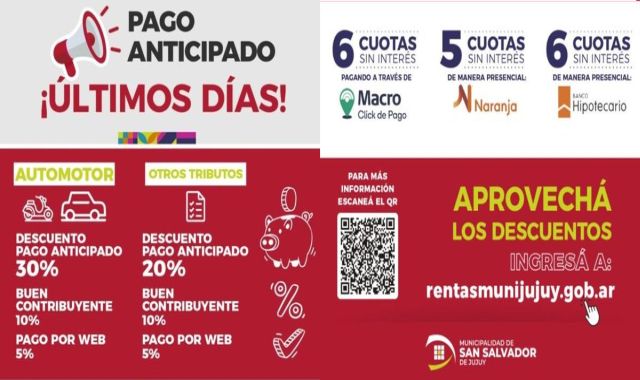 El municipio de San Salvador de Jujuy recuerda la posibilidad de retiro de efectivo en bocas de cobro de Rentas