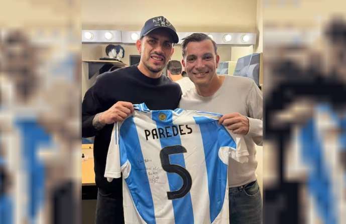 El futbolista asistió a la obra que coprotagoniza el actor y le regaló una camiseta firmada. Entre los cruces más