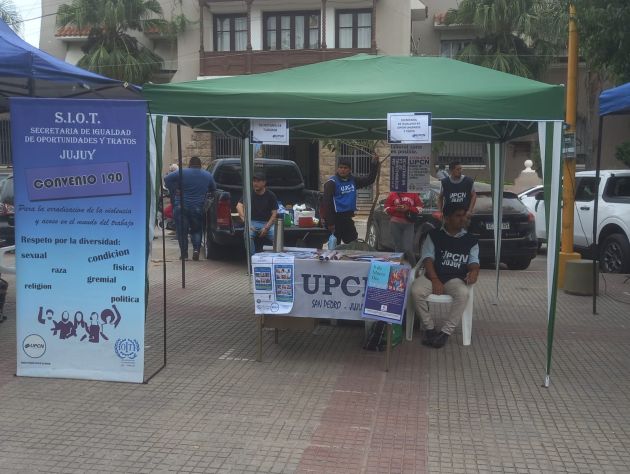 Delegados del sindicato colmaron la plaza General Belgrano en la ciudad de San Pedro de Jujuy con diferentes stands donde