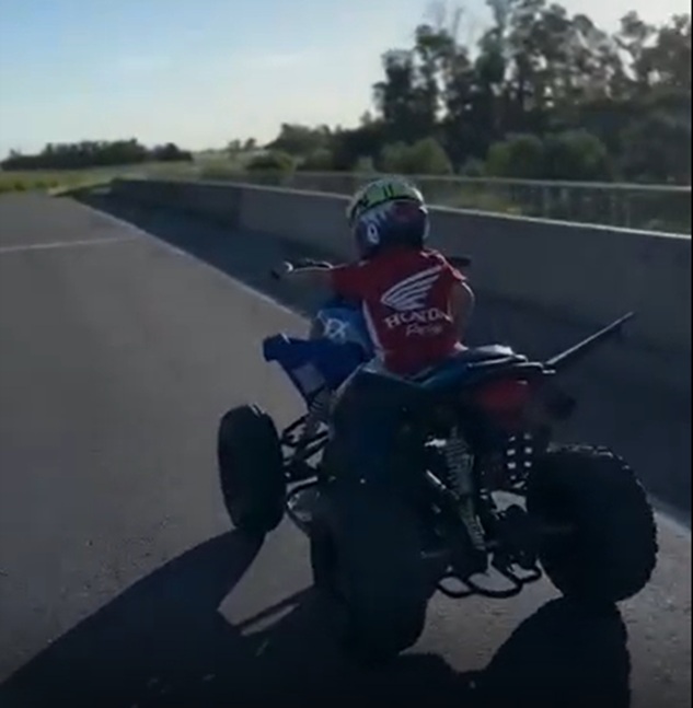 Dejó que su hijo de 5 años maneje un cuatriciclo en una ruta y lo subió a sus redes. La