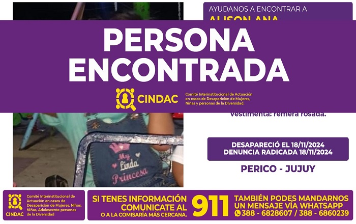 El Comité Interinstitucional de Actuación en Casos de Desaparición de Mujeres, Niñas y Personas de la Diversidad (CINDAC), informa que