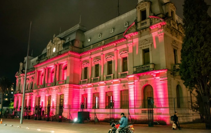 El tradicional edificio jujeño fue iluminado desde esta noche en alusión a la campaña de lucha contra el cáncer de