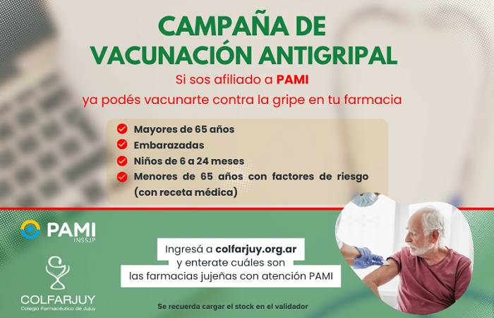 El Colegio Farmacéutico de Jujuy (Colfarjuy) informa que la Campaña de Vacunación Antigripal 2025 del PAMI comenzó hoy en todo
