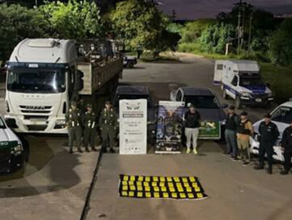 Ocultos en un doble fondo del acoplado, hallaron 41 kilos 805 gramos de cocaína. Seis hombres fueron detenidos, y se secuestraron un arma y dinero.
