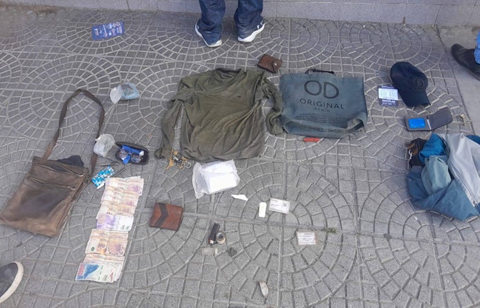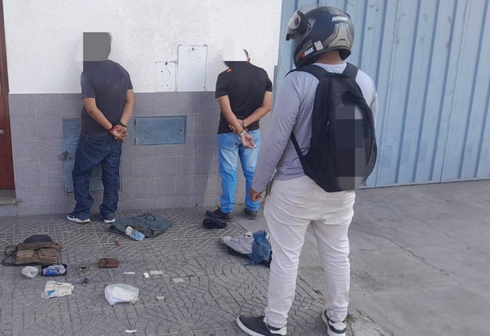 La aprehensión se concretó en inmediaciones de calle Caseros, luego de que los sujetos intentaran darse a la fuga al ser divisados por el personal policial (Zorro 3) mientras trasladaban un morral de cuero con pertenencias cuya procedencia no pudieron justificar.