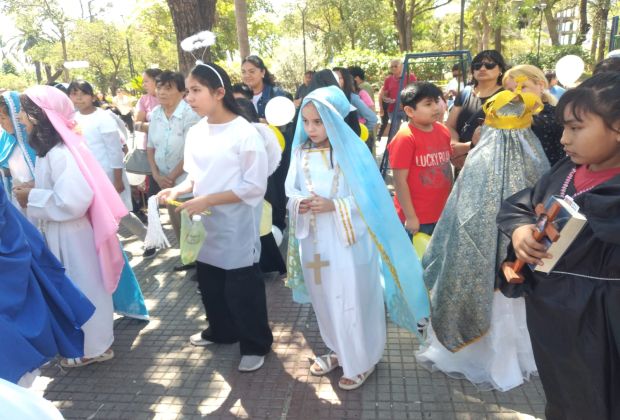 Niños de la catequesis y de distintas comunidades se vistieron representando a santos, santas, advocaciones marianas y ángeles, en una expresión de fe y alegría.