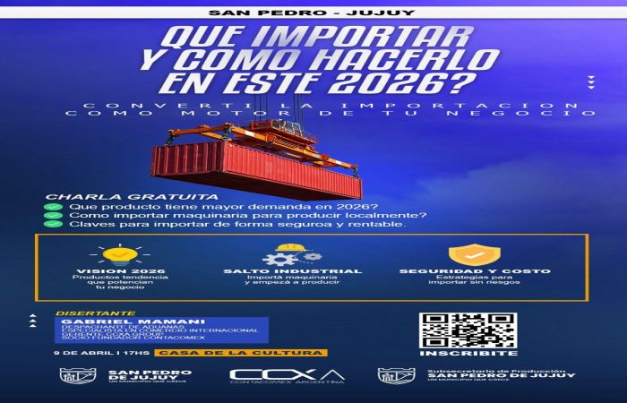 Se realizará una charla gratuita en la Casa de la Cultura de San Pedro de Jujuy destinada a emprendedores, comerciantes y público en general interesado en la importación de productos artesanales y otros rubros.