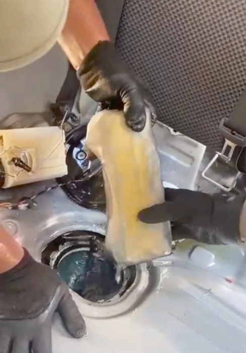 Luego, los uniformados extrajeron del tanque de combustible 15 paquetes rectangulares, que contenían la droga.