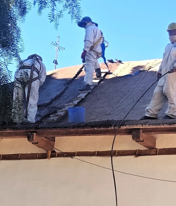 Principalmente, en la iglesia se realiza el recambio de la capa de desgaste del techo y de la pirka, la pared baja que delimita el predio, lo que se realizará anualmente. La capa de desgaste en la parte impermeable del edificio, y si llegara a agrietarse, provocaría filtraciones. El jueves pasado se preparó el barro, que debe dejarse estacionado al menos tres días. Asimismo, se repararon desgastes de molduras.
