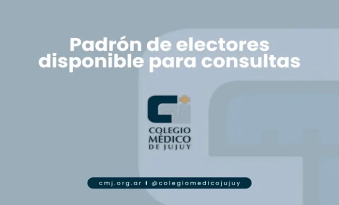 En el marco del proceso electoral que atraviesa el Colegio Médico de Jujuy, se informa que a partir del 13 de octubre de 2025 se encuentra disponible el padrón de médicos habilitados para votar en las próximas elecciones de la institución.