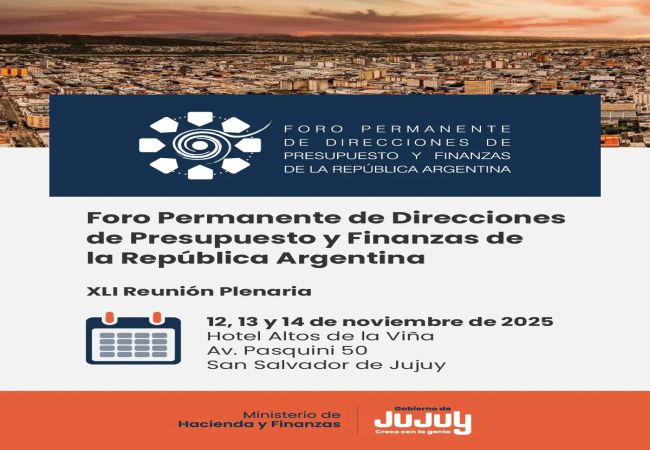 La Provincia de Jujuy será anfitriona de la 41° Reunión Plenaria del Foro Permanente de Direcciones de Presupuesto y Finanzas de la República Argentina, que se desarrollará entre los días 12 y 14 de noviembre en las instalaciones del Hotel Altos de La Viña, en la ciudad capital.