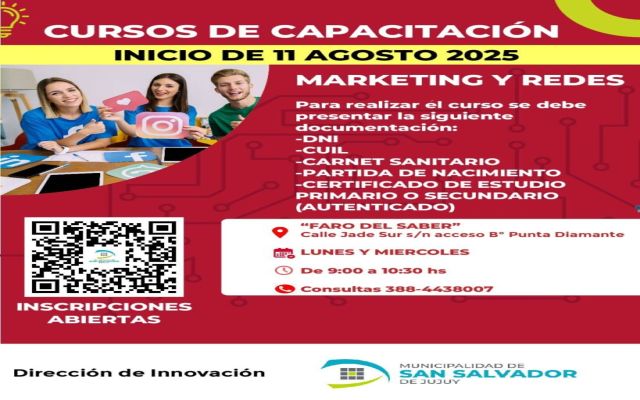 La Municipalidad de San Salvador de Jujuy invita a la comunidad a participar de una nueva propuesta formativa pensada para todos los vecinos y vecinas que deseen capacitarse y potenciar sus habilidades digitales.