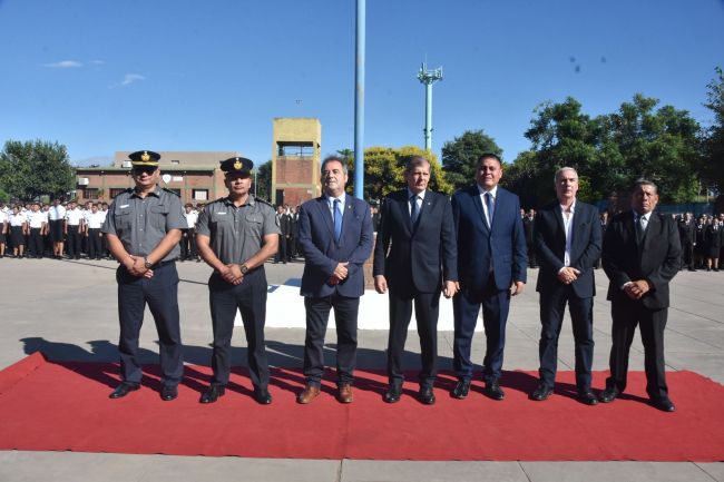 El vicegobernador, Alberto Bernis estuvo acompañado por el secretario de Seguridad Juan Manuel Pulleiro, el ministro de Salud José Manzur, el jefe de la Policía de la Provincia Milton Sánchez. Y contó con la presencia del personal académico y administrativo del IUPS y de los cadetes del mismo.